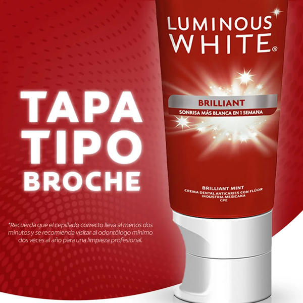 Dientes un tono más blancos en 1 semana. Descubre con Luminous White Brilliant el poder de tu sonrisa radiante y saludable eliminando manchas de manera efectiva.