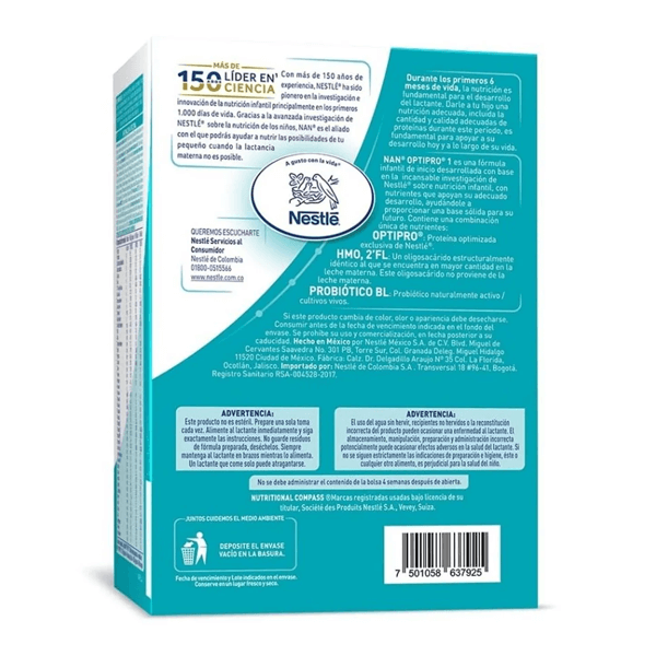 NAN OPTIPRO® 1 es una leche de inicio para bebés sanos desde el nacimiento, cuando la lactancia materna no sea posible. NUTRICIÓN EXPERTA que ayuda al desarrollo saludable proporcionando unas bases sólidas para su futuro.