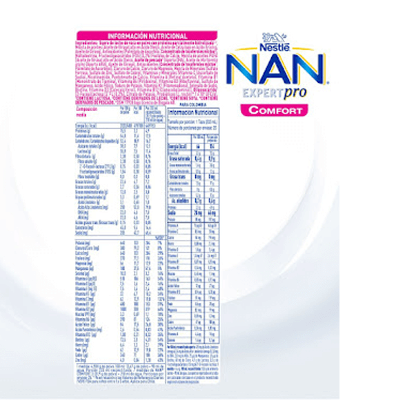 NAN Comfort 3 es un alimento lácteo con la combinación de tres ingredientes exclusivos: -Probiótico L. reuteri -OPTIPRO HA, proteína 100% suero parcialmente hidrolizado -Prebióticos GOS/FOS. NUTRICIÓN EXPERTA que ayuda al desarrollo saludable proporcionando unas bases sólidas para su futuro.